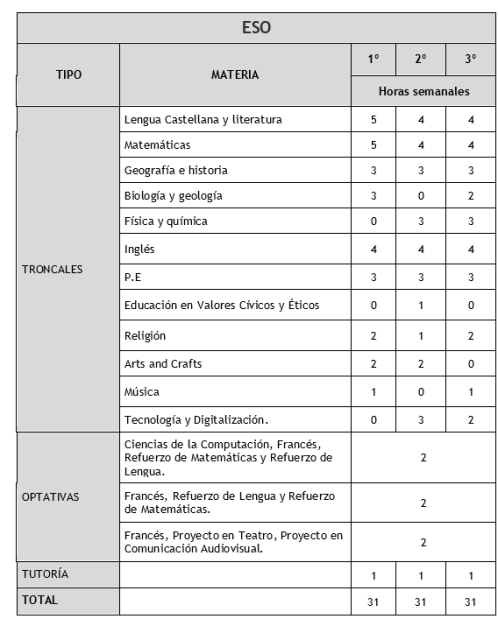 Nuestro Centro ha diseñado y puesto en práctica desde hace varios cursos un Proyecto Propio, amparándonos en la normativa vigente de Autonomía Pedagógica, que aumenta las horas lectivas de varias asignaturas e introduce alguna de ellas en Inglés.
